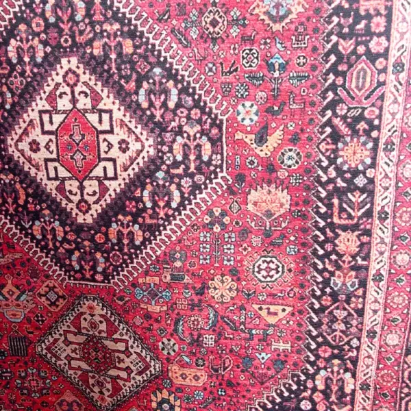 על יד שטיח צבעוני, התאימו כורסה מרופדת באחד מתוך צבעיו