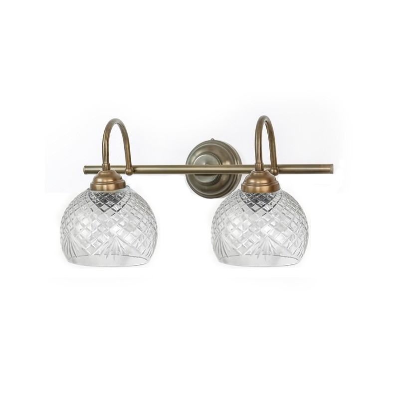 בעלת בסיס עגול בצבע ברונזה עליו מונח מוט וממנו מתפצלים שני אהילי זכוכית יפהפיים