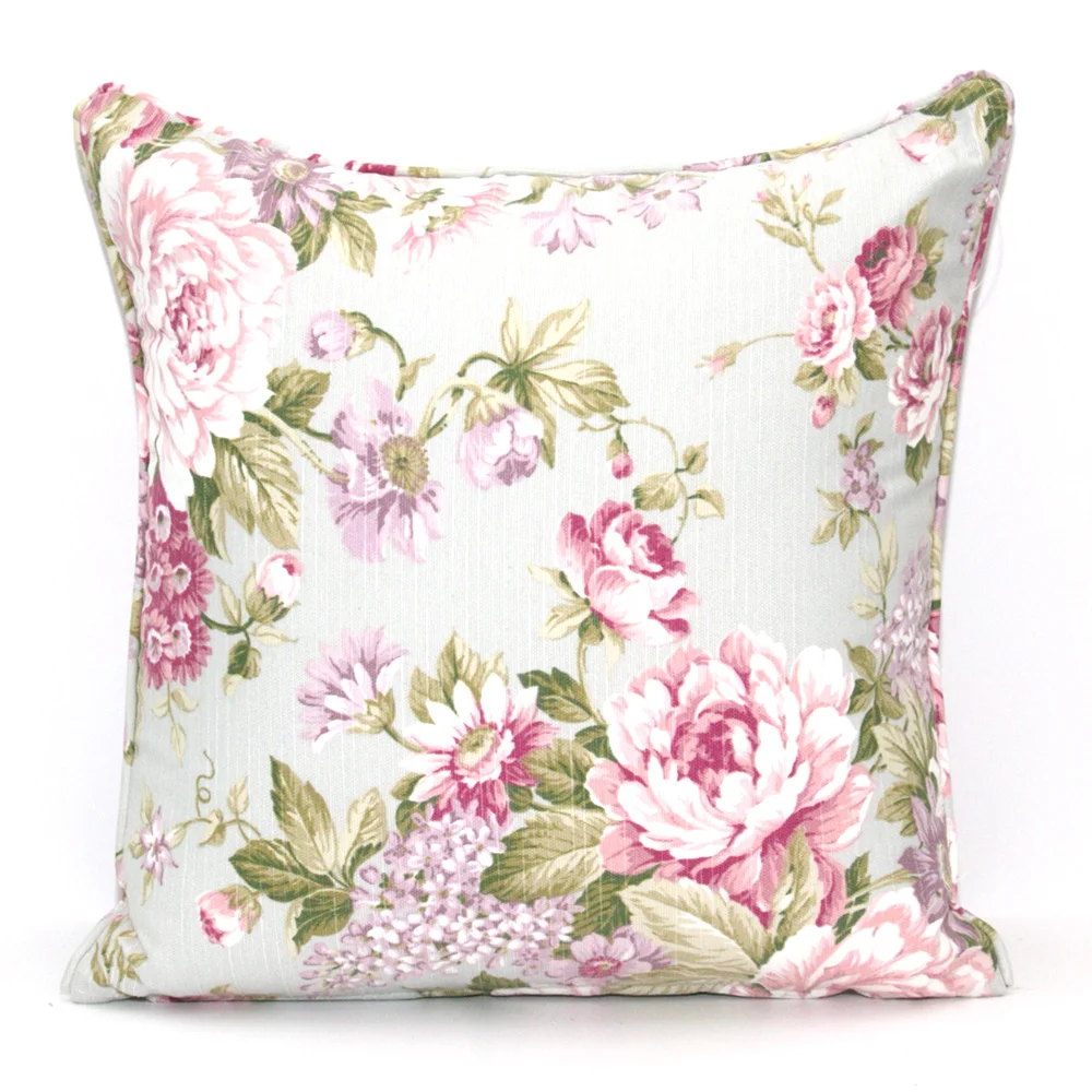 כרית פרחונית בגווני אפור, ורוד וירוק
