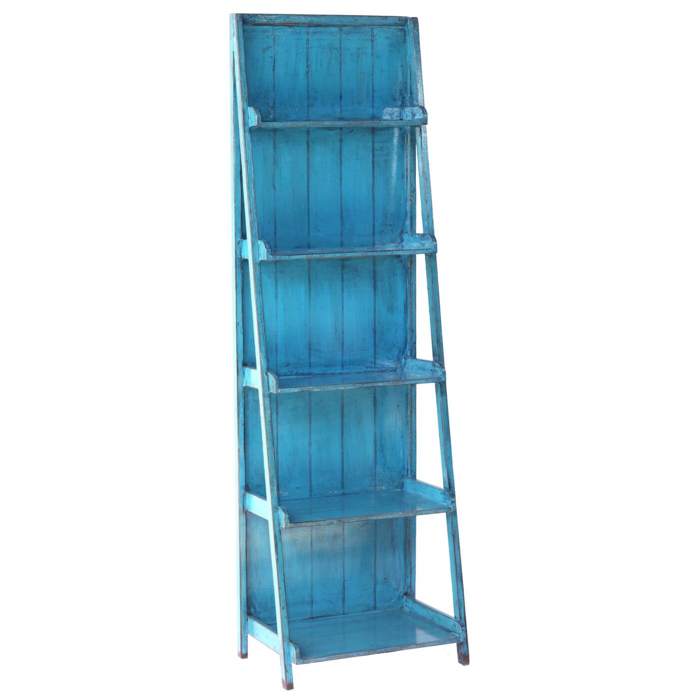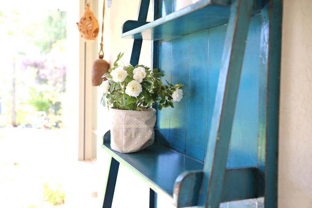 סולם מדפים כחול מעץ בגוון מקסים. הכוננית סולם המדורגת מיוצרת מעץ מלא ואיכותי, ללא הברגות וללא הרכבות (One piece) מתאימה מאוד כתוספת עיצובית כפרית וחמה לכל אזור בחלל המגורים בבית. רהיט איכותי בעל ערך שימושי עם אפשרות לאחסון ותצוגה של ספרים, עציצים וחפצים