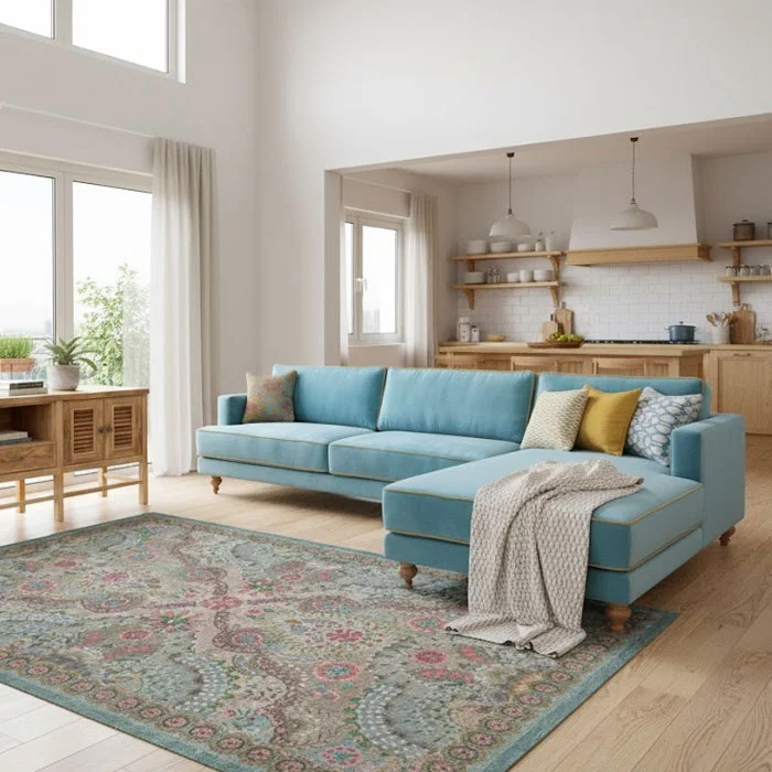 ספה פינתית איה שלנו, מרשימה ואלגנטית. בעלת רגלי עץ אלון המשוות לה מראה כפרי