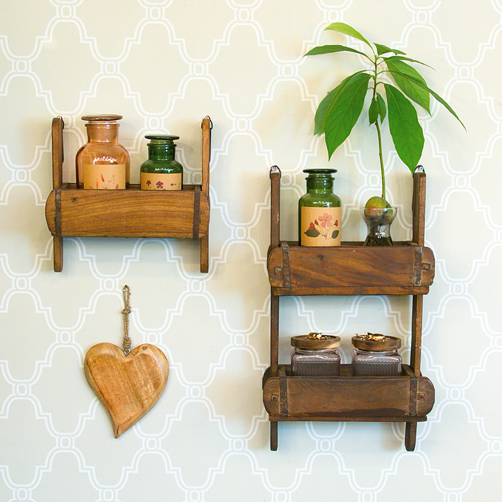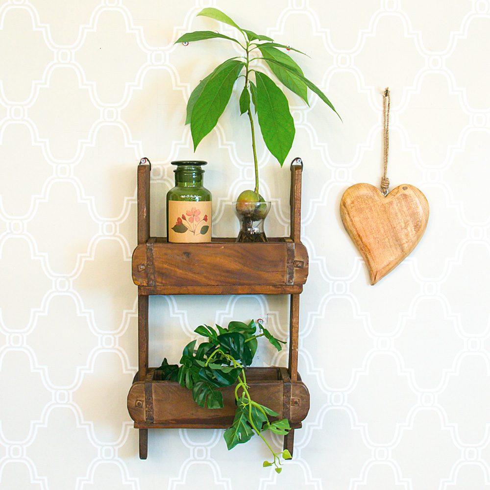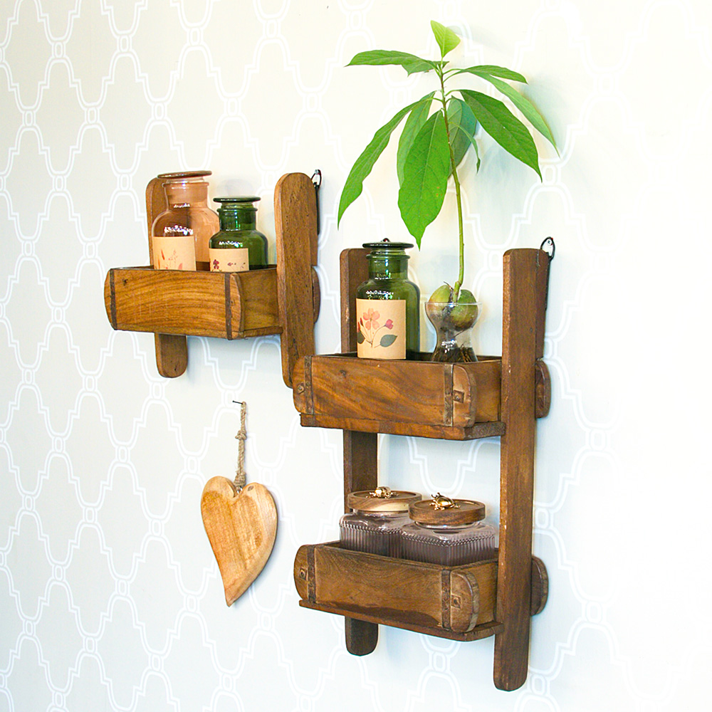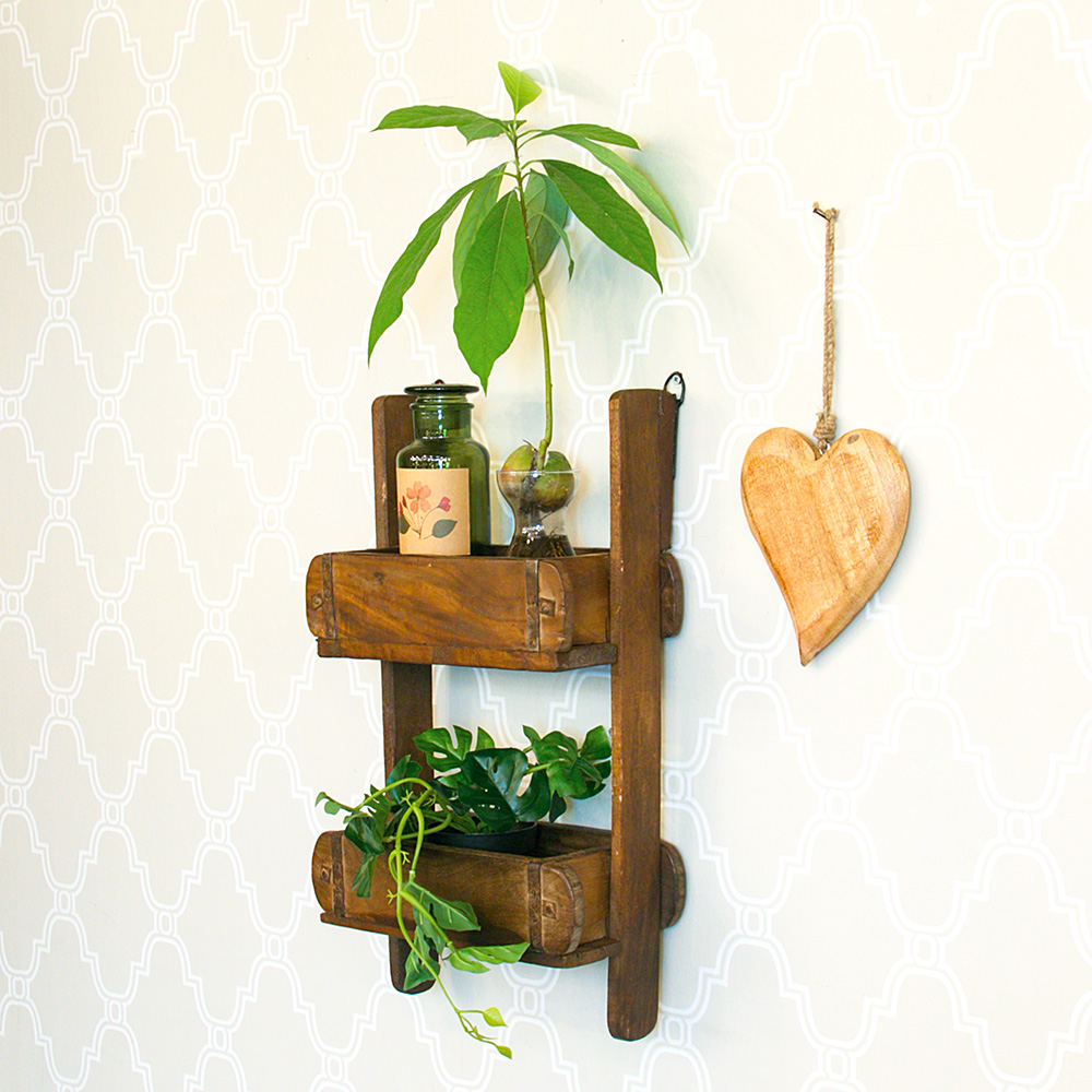 עשויי מעץ מנגו מלא, בעל שני מדפים אחד מתחת לשני