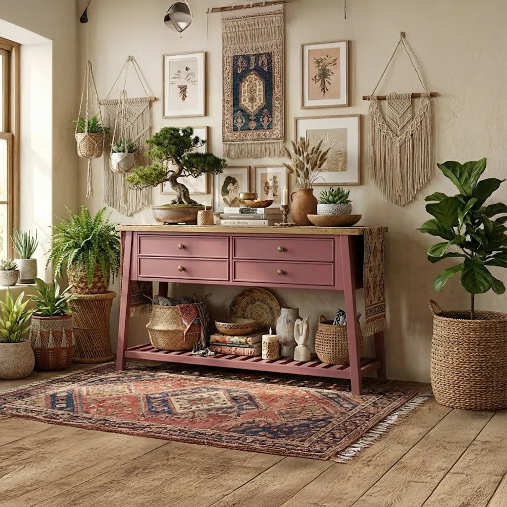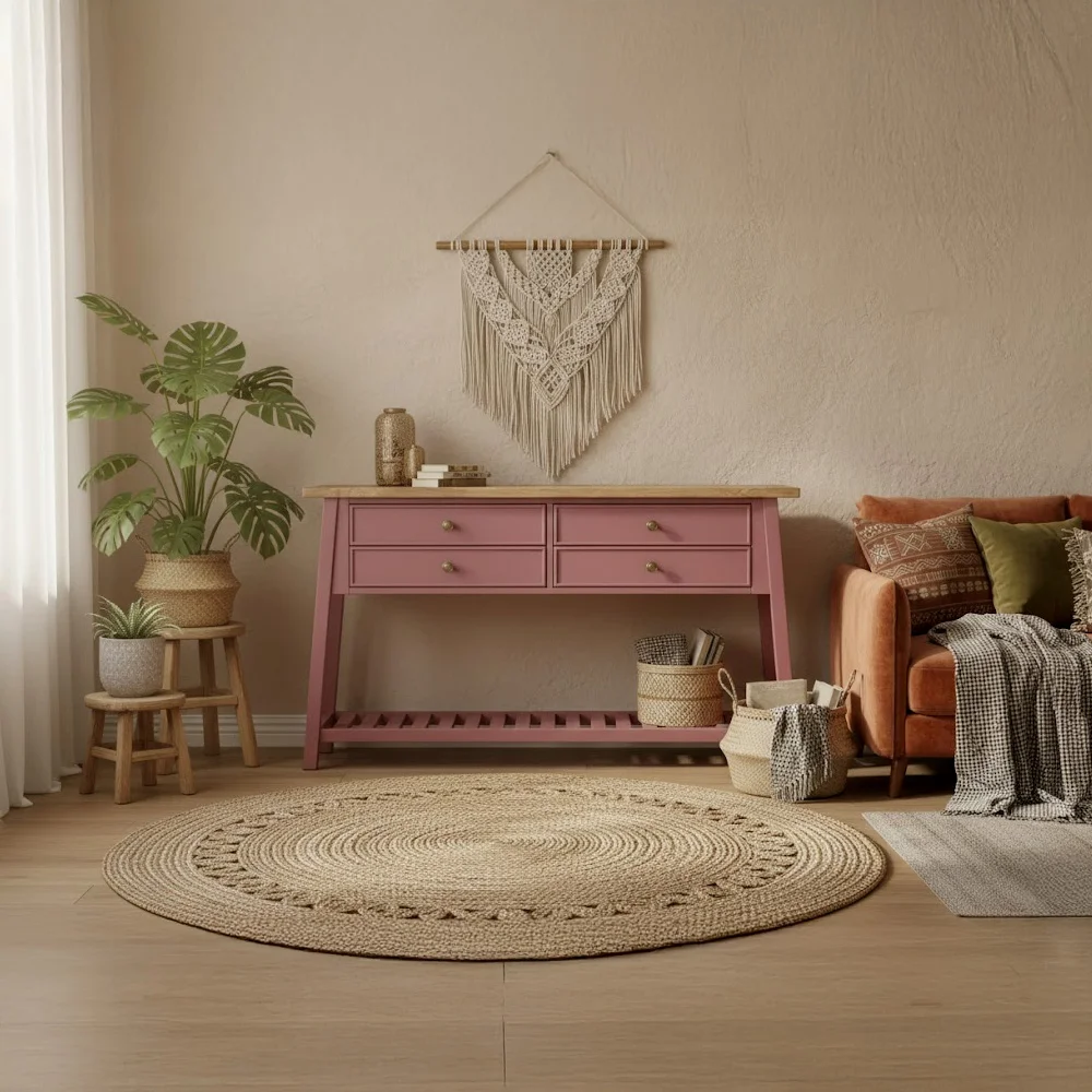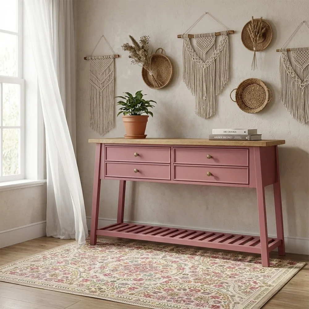 קונסולה מעוצבת אנט, בעלת ארבע מגירות רחבות, גוף הקונסולה עשוי מאם די אף צבוע בתנור