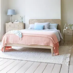 מיטה בסגנון סקנדינבי בעלת קווים רכים, מיוצרת מעץ אלון עם טקסטורה טבעית מקסימה ובעלת ראש מיטה פישבון המעוצב בקווים גאומטריים. להשיג בשלושה גדלים לבחירה.