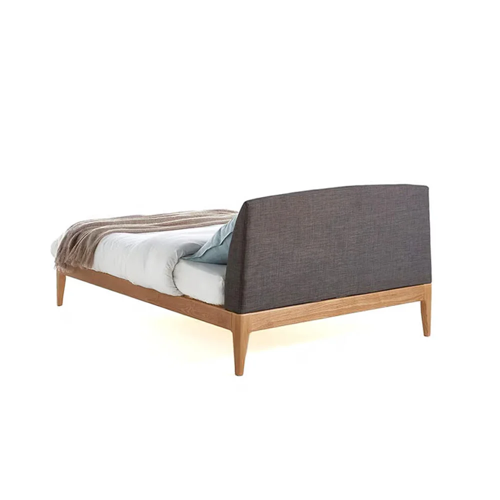 המיטה מיוצרת מעץ אלון מלא עם בסיס מזרן נושם ובריא. ראש מיטה מרופד נוח במיוחד בעת הישענות לאחור בעת קריאה או צפייה בטלוויזיה. ריפוד המיטה מיוצר בצבע אפור כהה מבד איכותי קל לניקוי. תוספת מקסימה לעיצוב חדר השינה.