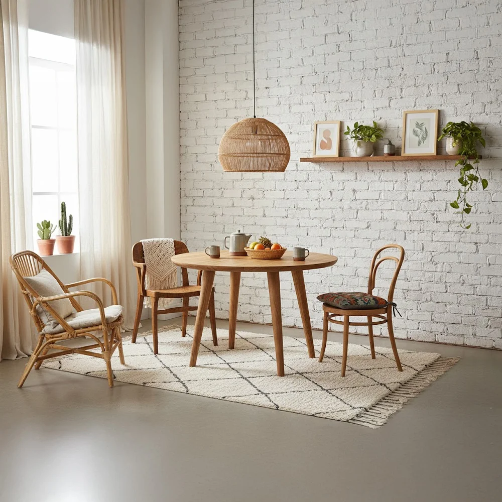 שולחן עגול עם משטח דק עשוי מאלון מלא, רהיט איכותי בגימור מעולה.