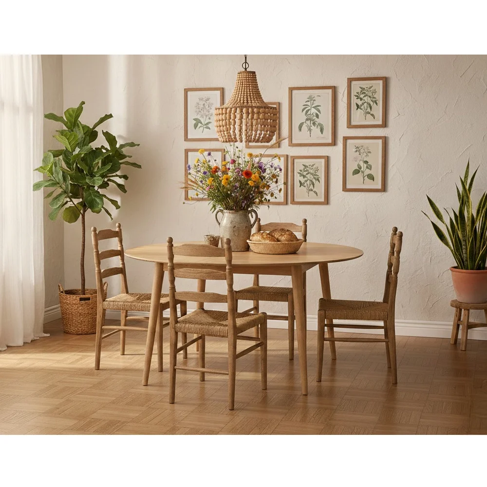 שולחן עגול, רגלי השולחן ובסיס המבנה מיוצרים מעץ אלון מלא והמשטח העליון מפורניר, רהיט איכותי בגימור מעולה.