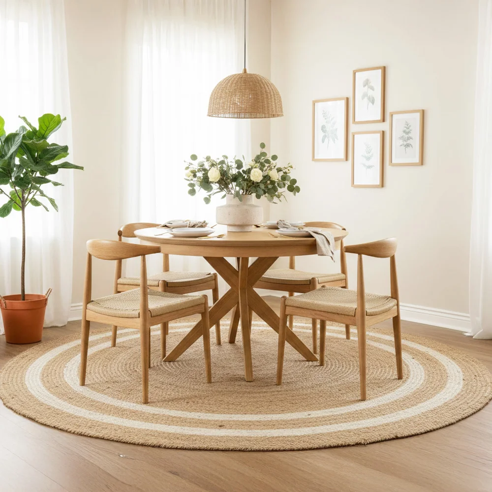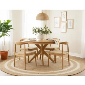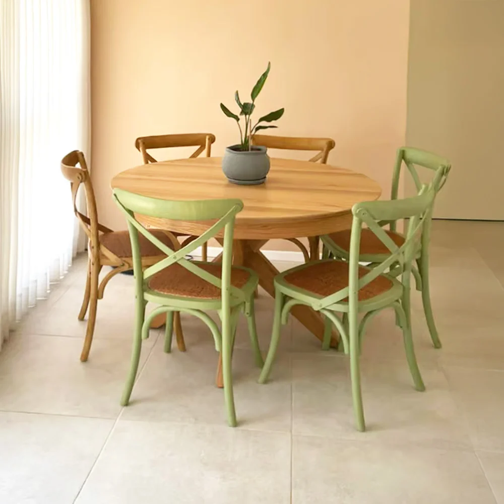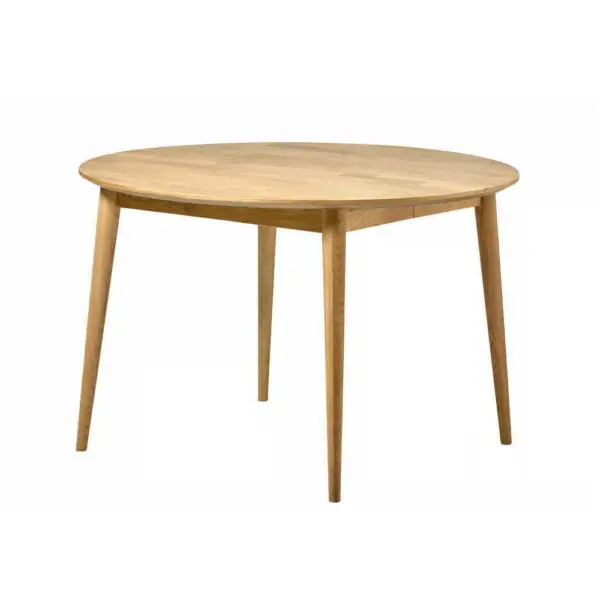 שולחן עגול, רגלי השולחן ובסיס המבנה מיוצרים מעץ אלון מלא והמשטח העליון מפורניר, רהיט איכותי בגימור מעולה.