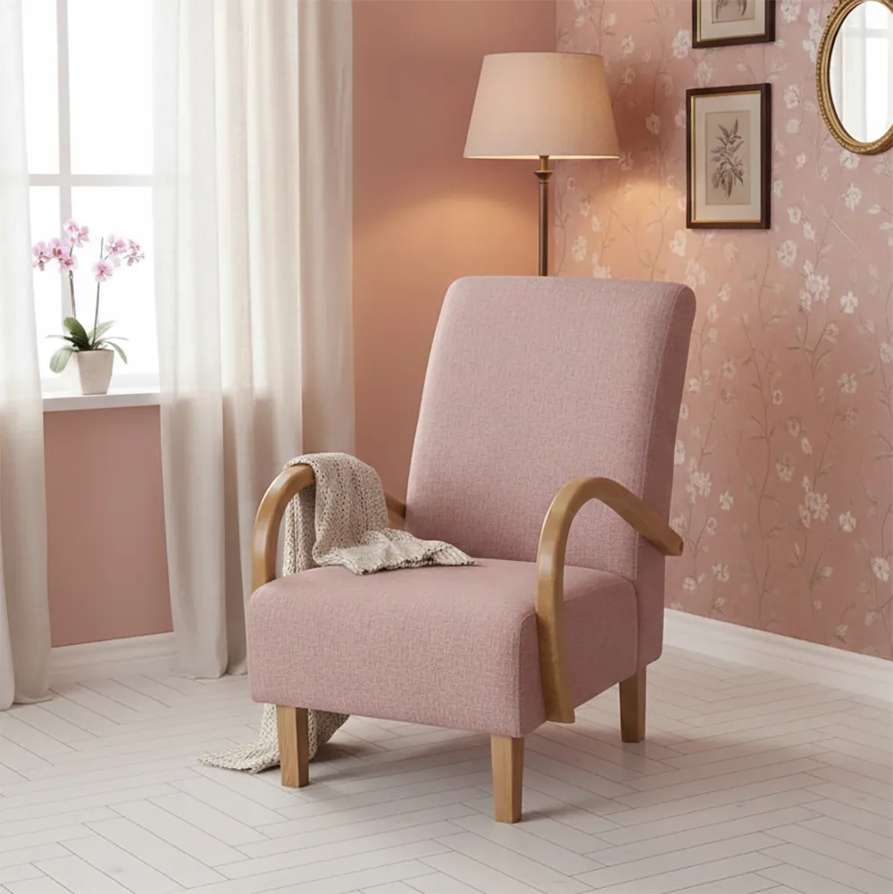 כורסת פרידה מעוצבת עם גב גבוה מרופדת בבד ריפוד טקסטורה שתי וערב