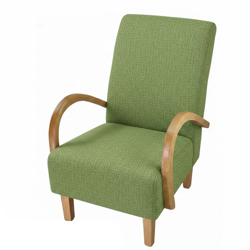 כורסה במראה קלאסי בעלת ידיות עץ מעוגלות