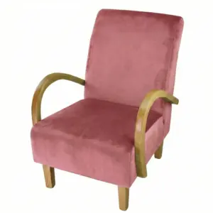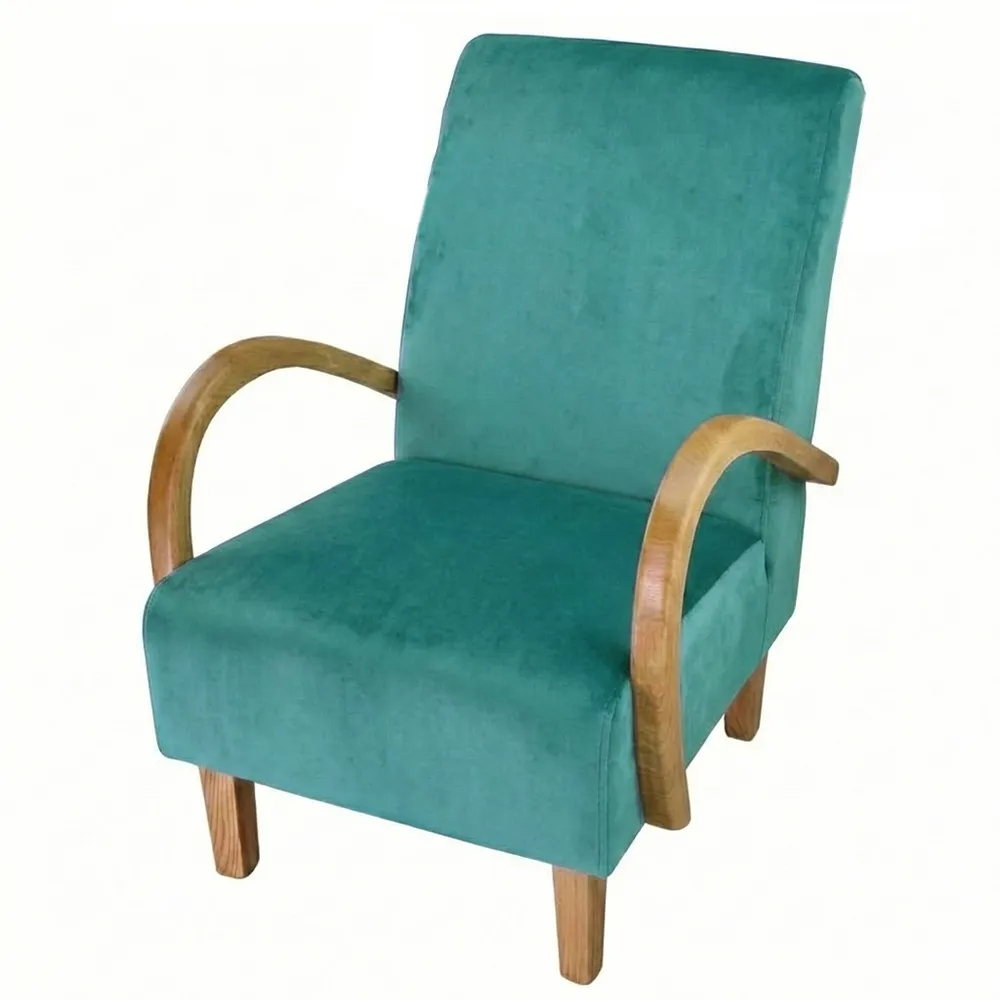 כורסה במראה קלאסי בעלת ידיות עץ מעוגלות
