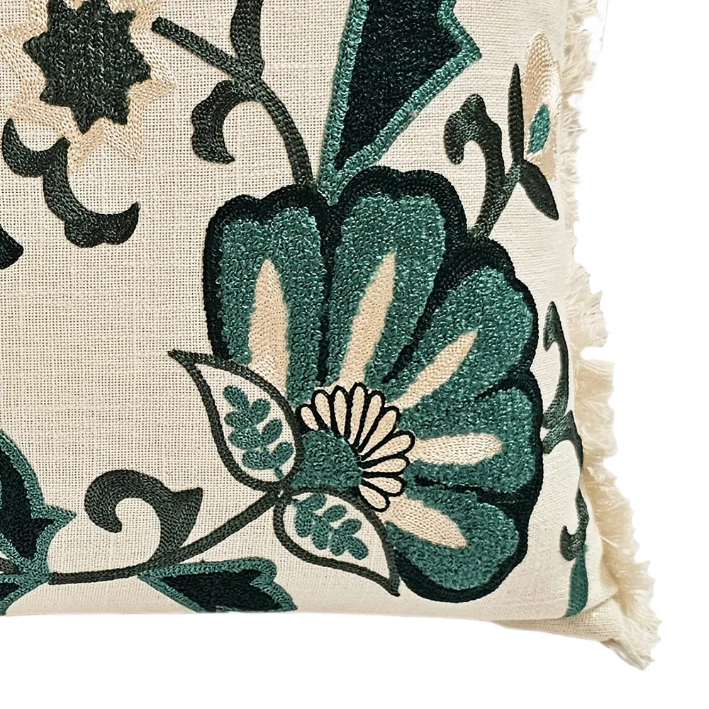 הכרית בצבע טבעי בהיר עם ריקמה בגווני טורקיז