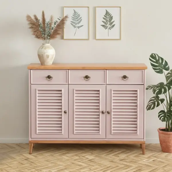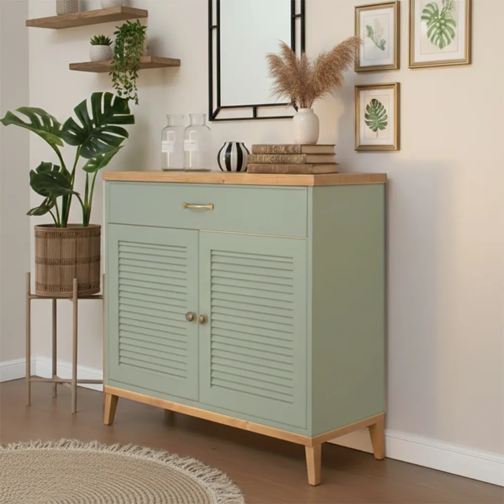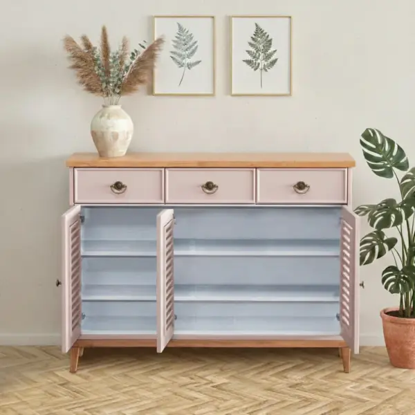 שידת כניסה “קארי” אשר מתאימה גם לאחסון נעליים בזכות דלתות התריס המאווררות
