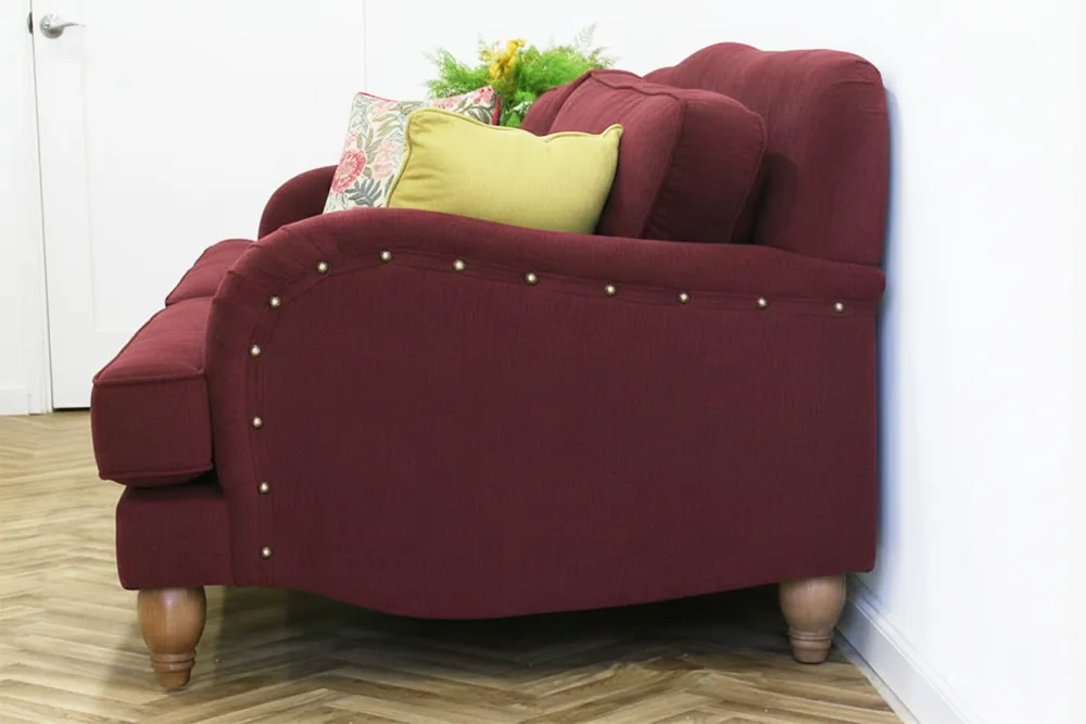 ספה מעוצבת לסלון מיכאלה- ספה לסלון יפיפייה ומפנקת, בעלת גב מקומר ורגלי עץ אלון מעוגלות.