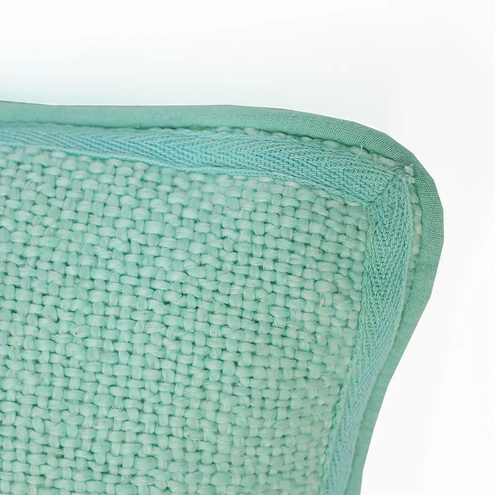 הכרית בגוון ירוק מנטה, עשויה מבד כותנה עם טקסטורת אריגה