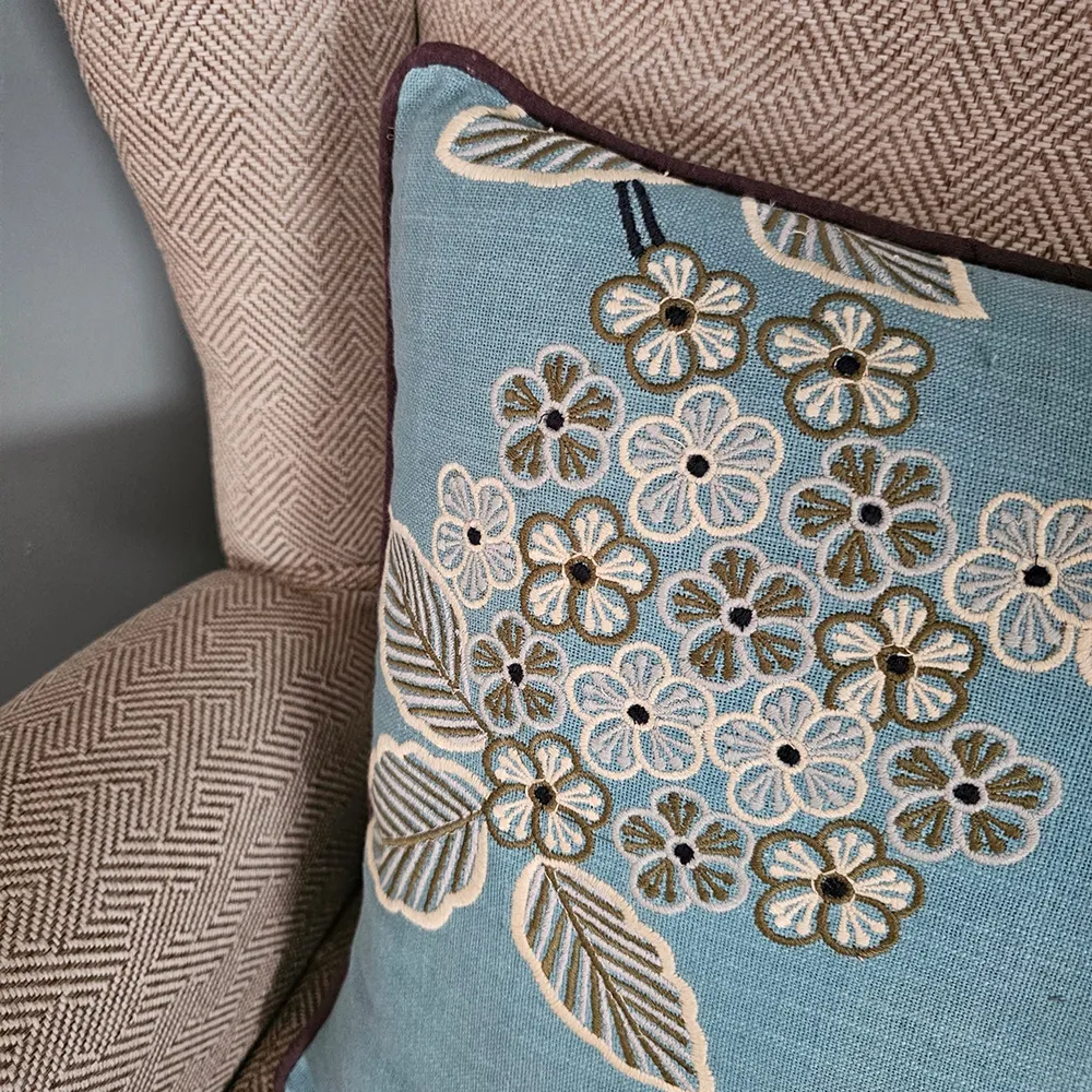 הכרית עשויה מבד כותנה רך ונעים, רקמה עדינה בדוגמת פרחים מחוטים במראה משי